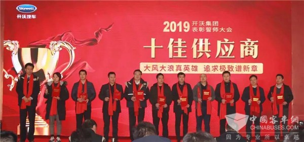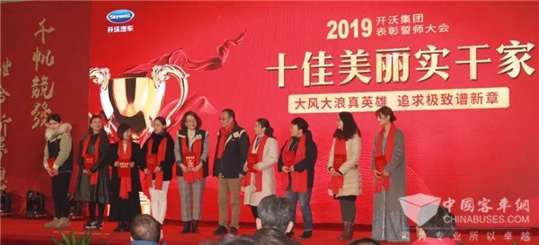 表彰誓师大会则根据2018年开沃集团取得的卓越成绩,对开沃集团各事业部、全国各地的团队及员工进行了表彰和颁奖,同时,开沃集团也针对各地的优秀供应商等多家合作伙伴进行颁奖表彰。