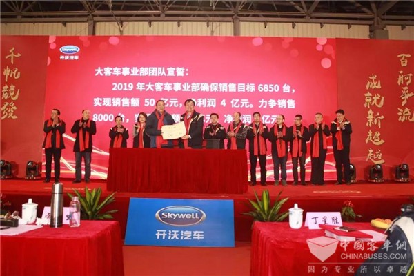 针对2019年,开沃集团各事业部也表现出了十足的信心,并签订了业绩责任状。