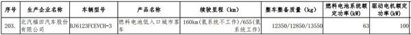 从纯电动续航里程来看,福田欧辉BJ6123FC-EVCH3燃料电池客车是本次榜单上续航里程最高的车型,在氢系统工作的状态下能达到655KM。该车型也是本次唯一一款燃料电池客车。