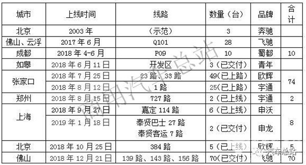 从2003年第一批3辆奔驰氢燃料电池客车出现在北京街头,到2017年全国首条正式商业化载客运营的氢能源公交示范线在佛山云浮试运营,随着技术渐趋成熟,中国公交行业敞开了大门,国内各主要城市氢燃料公交车先后上线运营,具体盘点如下: