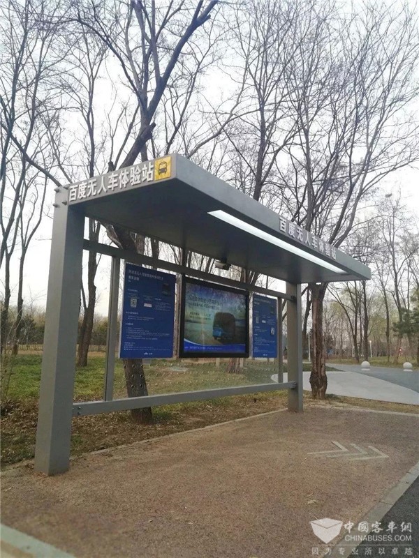 在北京的海淀公园里设置了无人驾驶巴士体验站,想体验无人驾驶巴士得提前在网上预约,然后就在此等待“车辆转弯,请注意安全”小巴车正缓缓驶来。