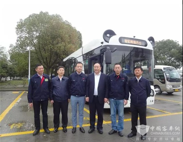 王德佳书记听取了申龙客车近年来新能源客车技术的发展状态和市场情况,并参观了申龙客车的生产线。详细了解完公司的发展情况后参观了申龙客车的新能源产品,包括最近风头正盛的由深兰科技与申龙客车联手打造的熊猫智能公交。熊猫公交可爱的造型、高科技的配置获得了王德佳书记的充分认可。