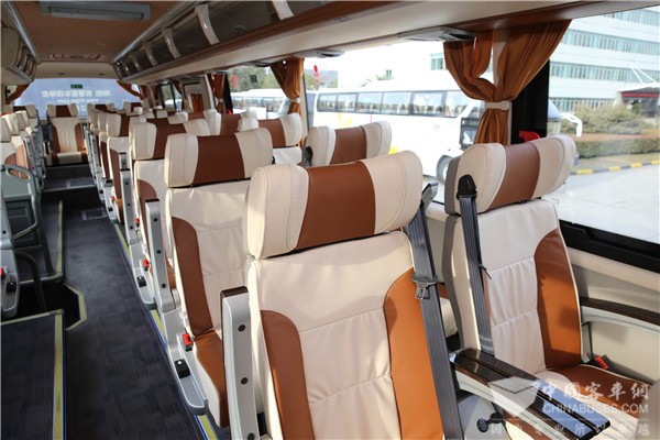海格海威KLQ6122B一改常规12米车50个座位安排,改用33+1商务座位设计,从而营造最宽敞座间距,最佳乘坐体验感。在细节上,除了让座椅包裹性更加人性化、舒适性更好外,在“2+1”座椅布局的基础上,扶手可向上抬起的设计让进出更加方便。为啥这么下工夫?赵鹏飞说,对于新疆而言,“乘坐舒适感”是车辆品质很关键的一个考核点,由于新疆地域广阔,从南到北长达2000多公里,在这样的地貌环境下,长距离乘坐是常态。就拿乌鲁木齐到喀纳斯来说,单趟行程就需要乘坐16-17个小时,往返至少四天时间。乘客有很大一部分时间待在车上,提供宽敞、舒适的乘坐环境就是体现服务品质的重要一步。