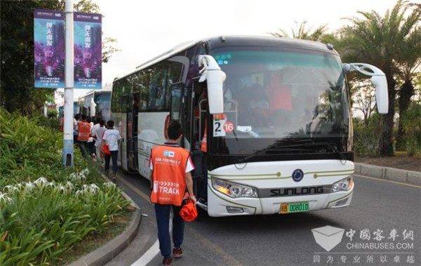本次三亚站比赛的举办地海棠湾是全球知名的旅游目的地,无与伦比的海景和令人陶醉的空气都是这里吸引游人的名片,而电动方程式这项代表着绿色、环保、高科技的赛事与海棠湾绝美的风光、绝好的环境可以说是天生一对。在这种氛围下,本次赛事对于服务用车的要求也是十分严格,不仅仅要求是新能源客车,从性能到配置更必须是其中的佼佼者,此次入选赛事服务的申龙SLK6108纯电动客车正是这样一款经典的新能源车型。在经历层层筛选、检修、试运行后,以优异的表现得以中标参与到赛事服务中。在三天的赛事服务中,申龙客车出色的完成了车辆的服务任务,既获得了客户的认可也向世界展现了中国客车的品质和形象。
