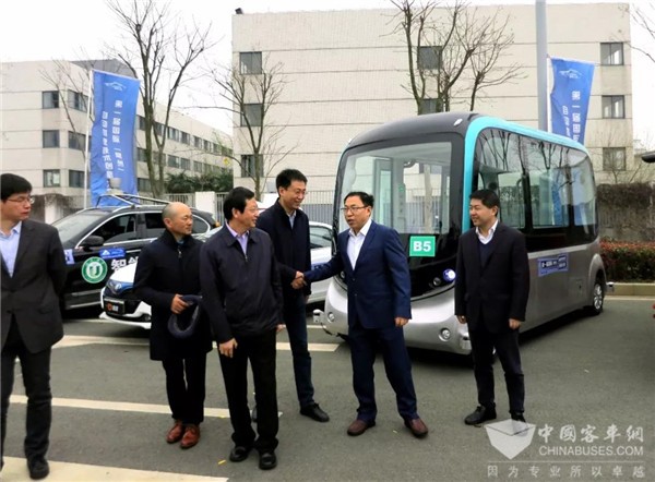 “蓝鲸号”因其造型独特、深度无人化设计,以及自主开发的低成本无人驾驶系统等,引起与会各方广泛关注。江苏省工信厅胡学同副厅长、国家工信部装备司汽车处马春生副处长、省工信厅汽车工业办卢载贵处长等领导参观“蓝鲸号”,详细询问了“蓝鲸号”无人驾驶技术水平,并鼓励开沃集团要深度开发“电动化+智能化”技术,助力中国汽车产业转型升级。