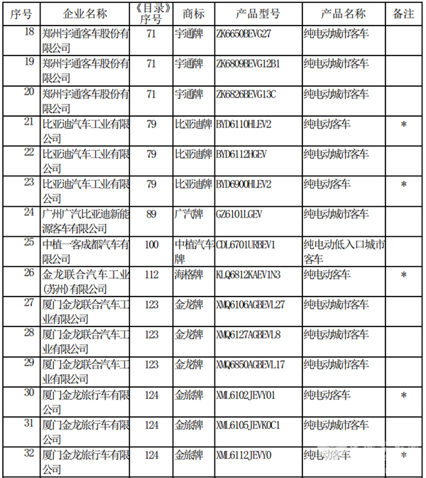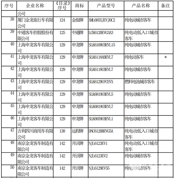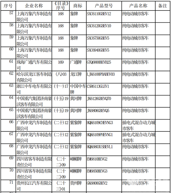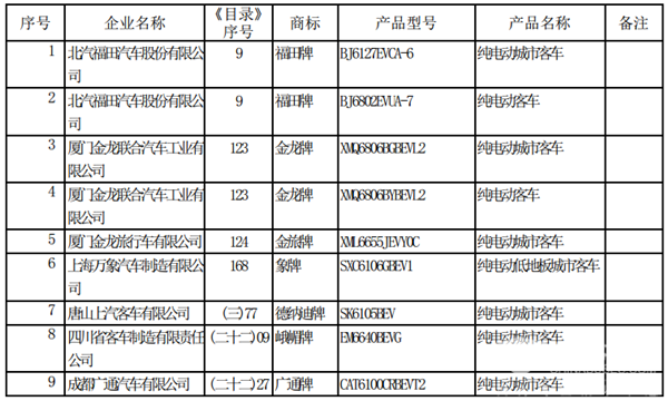 以下为2019年第3批新能源汽车推广应用推荐车型目录(客车部分)