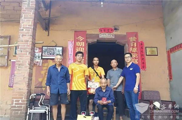 2017年,在临近“八一”建军节之时,中车电动组织青年志愿者慰问抗战老兵黎模达。为黎老送上慰问品,聆听老人回忆峥嵘岁月。