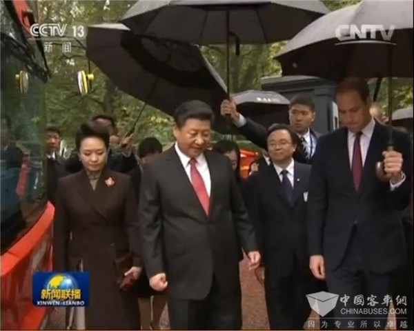 2015年10月,习近平总书记及其夫人彭丽媛,威廉王子及凯特王妃在伦敦视察比亚迪纯电动双层大巴。