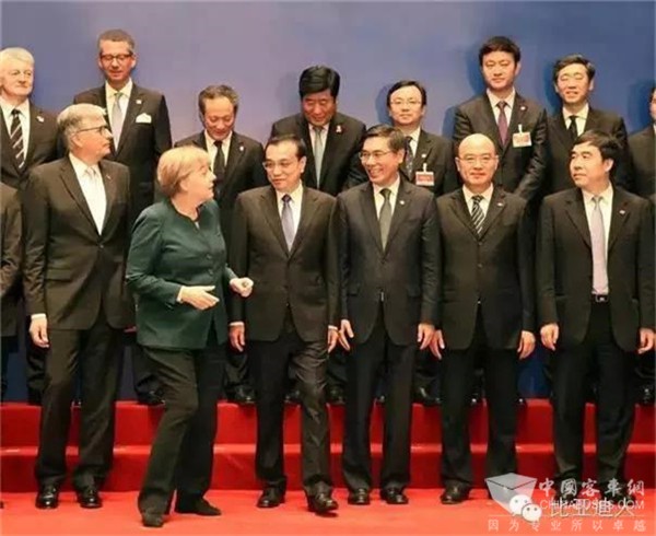 2015年10月,李克强总理与德国默克尔总理在中德经济顾问委员会座谈会上听取王总汇报。