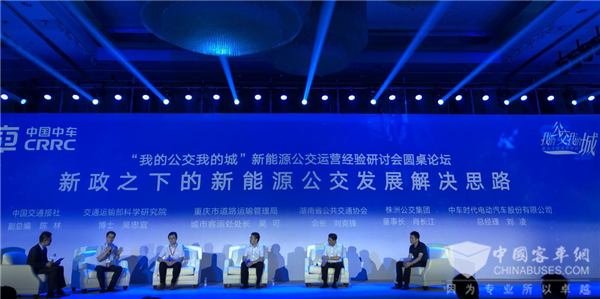 在圆桌论坛环节,研究机构、运输管理部门、行业协会、公交企业和客车企业的五位代表共同探讨,为更好地提升新能源客车技术、降低成本,解决新能源公交推广应用资金、配套设施等难题提供解决思路。