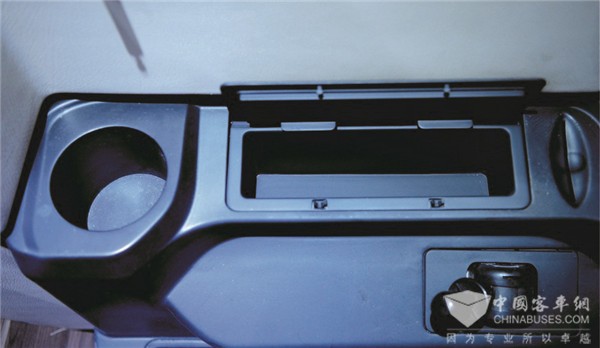 驾驶员左侧设有水杯座和储物格。