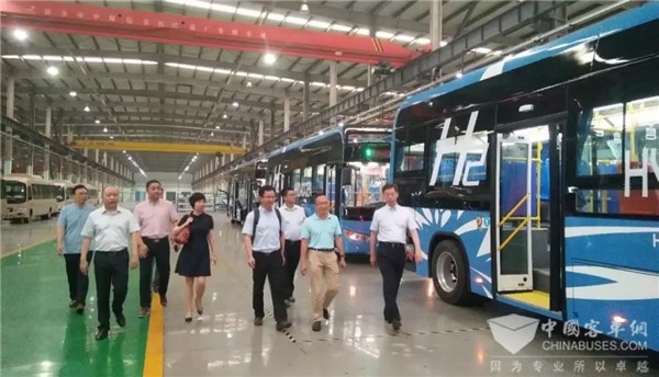 2019年6月20日上午,由中国汽车工程学会副秘书长王菊带队,北京大学教授、新能源专家库专家黄勇作为审核组组长,上海机动车检测技术中心潘相敏总工程师,湖南大学教授、新能源专家库专家雷飞组成的审核组一行莅临陆地方舟,考察公司氢燃料电池客车技术产品发展应用成果,对该批交付的5台氢燃料客车进行审核。经济开发区党工委委员、管委会副主任赵宏祥和氢能源产业园管委会主任赵巍等相关领导陪同参与审核。