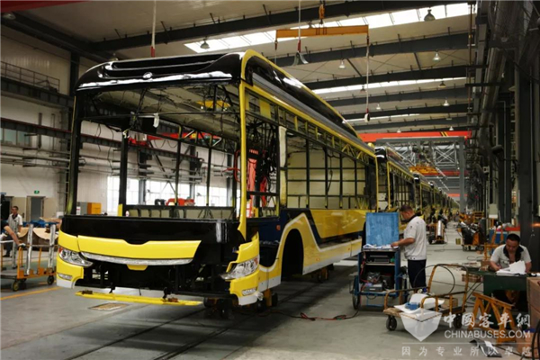 2019年端午节过后,丹东黄海客车事业部的四大生产车间纷纷进入哈尔滨公交公司501台新能源公交订单批产的“大干”高潮中。