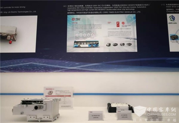 在2019世界新能源汽车大会上,中车电动重磅展示了基于以上项目的车用SiC电机控制器、车用自主1200V SiC 芯片及模块、车用高温大电流SiC MOSFET双面银芯片技术等最新科技成果。