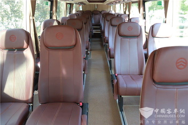 在确定好车型之后,新月联合为了解决座间距问题,最终决定改变座椅布局。在接到这项任务之后,金旅客车专门指派工程师来到北京,为新月联合制定周密的改装计划,总共提供了3种座椅布局方案。经过半个月的紧张施工,为每辆领航者球队大巴改装了12个特殊间距座椅。经过改装后的车辆,得到相关领导的高度认可。