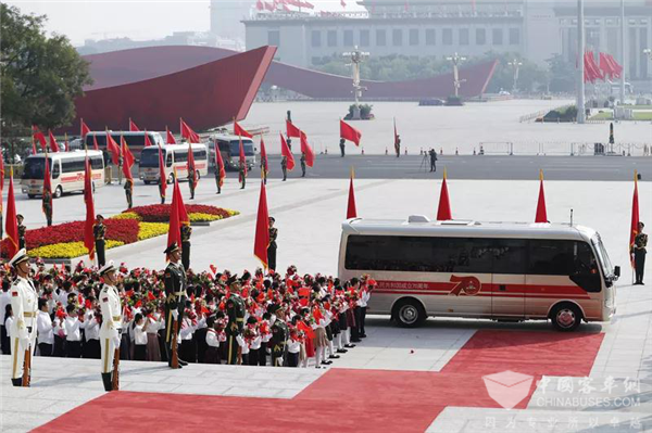 共和国勋章获得者乘坐宇通T7前往人民大会堂接受表彰