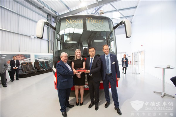 在活动现场,第500辆购买企业Nova Tour总经理David Sheriff、Go North East公司总经理Martijn Gilbert、Welshs’s coaches总经理John Welsh、宇通英国合作伙伴Pelican engineering总经理Richaid Crump、宇通集团品牌副总监蒋冰、宇通西欧大区经理李克杰等人出席仪式,共同见证宇通客车在英国市场里程碑式的成果。