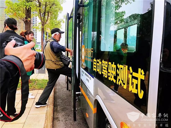 媒体团在这种路况复杂、开放真实的场景中,充分体验安凯自动驾驶公交车。媒体团上车后,车上激光雷达和传感器可探测到人员上车情况后自动关闭车门。车辆起步以后,行驶、转向、变速全部实现了自动操作,仅有一名安全员坐在驾驶室内,处理一些突发情况以保证行驶安全。