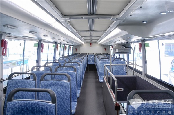 车内安装前、后LED电子路牌,可为乘客提供便捷、精准的可视化路牌。车辆配备车载WIFI、刷卡机系统(包含人脸识别)等,为游客提供更优质的服务。全车还通过GPRS全面实现车辆安全状况的远程监控,将驾驶员操作、车辆运行状态实时监控并显示在液晶显示屏上,辅助驾驶员正确驾驶操作。车内还采用1+8摄像头——前路况、驾驶座、一层车厢、前门、中门、二层车厢、楼梯上层、楼梯拐角(含楼梯下层)、倒车共九个让驾驶员纵览全车状况,以保证全车乘客安全。