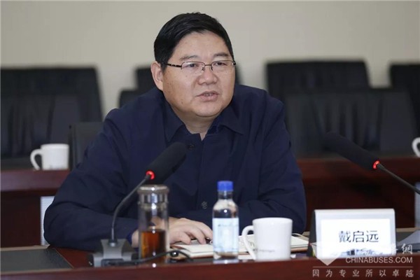 参观结束后,戴启远市长一行移步至会议室,与福田汽车集团领导进行了深入座谈。座谈会上,淮北市委副书记、市长戴启远与北汽集团副总经理陈江,福田汽车集团副总经理武锡斌,福田汽车集团业务副总裁、欧辉客车事业部党委书记、总裁梁兆文分别发表讲话,表达了双方合作、互利共赢的美好愿景。