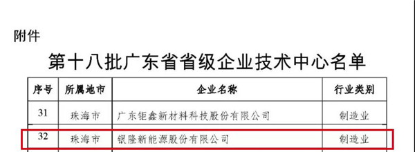 科技强到产业强 银隆入选“广东省省级企业技术中心”名单
