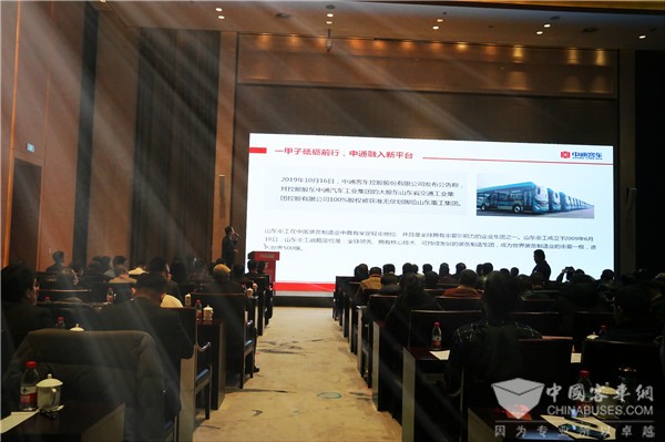 2019年11月30日,以“新平台、新中通、新未来”为主题的中通客车2020年商务年会暨 “绿色交通论坛”成立大会在西安陕西宾馆隆重召开。来自新国线集团、廊坊公交公司、陕西交通运输总公司以及齐齐哈尔中通公共交通有限责任公司、甘肃陇上行旅游客运有限公司、许昌市城市公共交通有限公司等全国各大公交、旅游、客运集团的领导共200余人参加此次大会。山东交通工业集团党委书记、董事长李树朋、中通客车控股股份有限公司党委书记、董事长孙庆民、总经理彭锋、副总经理曹茂波等公司领导现场发言并主持会议。