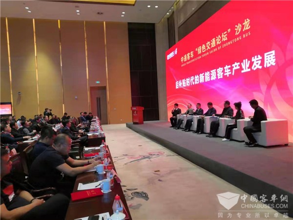 在沙龙环节,中通客车彭峰总经理、潍柴新能源公司王志新总经理、齐齐哈尔中通公共交通有限责任公司李彦明董事长、甘肃陇上行旅游客运有限公司沈延锋总经理、嘉峪关市公共交通有限责任公司龚桂萍总经理、许昌市城市公共交通有限公司陆建明总经理在中国道路运输网总编辑奚乐夫的主持下,围绕《后补贴时代的新能源客车产业发展》展开讨论,更加坚定了与会所有事业伙伴应用新能源客车的信心。