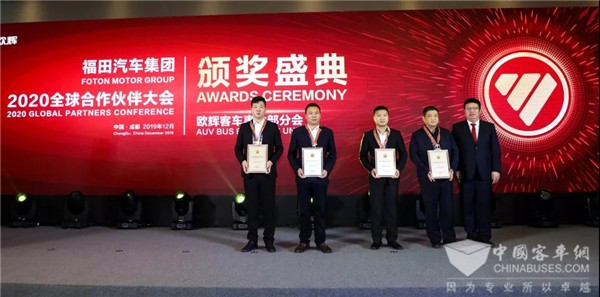 欧辉客车事业部运营副总裁李敏主持颁奖盛典,对福田欧辉2020年表现突出的服务商、经销商进行了表彰。