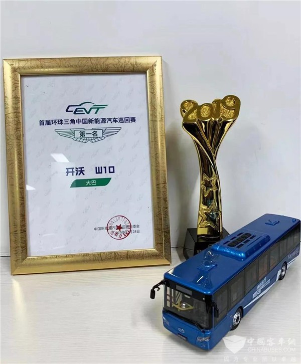 在首届环珠三角新能源车巡回赛上,开沃汽车本次派出了明星车型开沃W10纯电动客车参赛,并摘得“商用车第一名”的奖项。