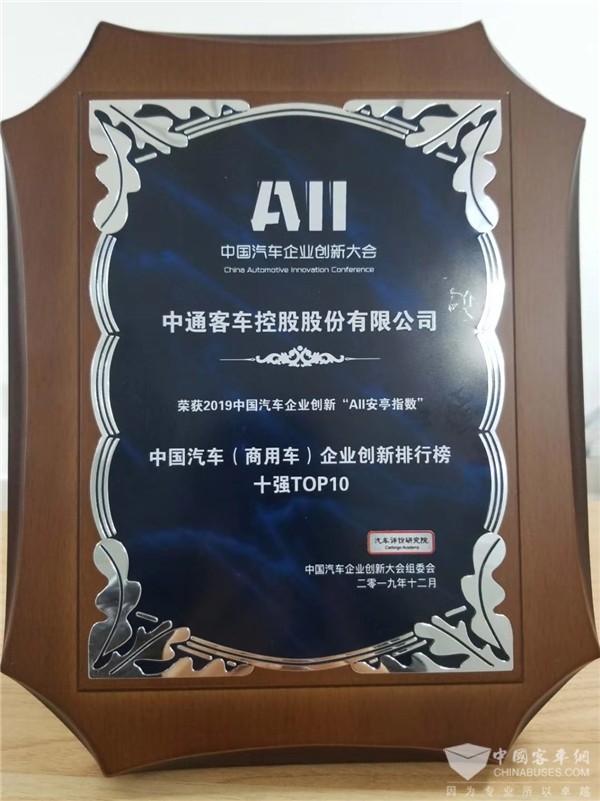 2019中国汽车创新“安亭指数”揭晓 中通客车荣登排行榜TOP3