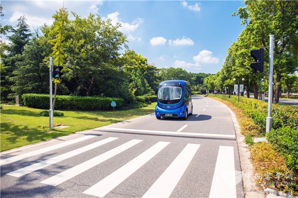 作为江苏首批无人驾驶客车道路测试牌照的拥有者,海格L4级量产无人驾驶纯电动巴士Pro-Blue“深蓝”于今年4月全球首发,该产品应用国内首款车规级无人驾驶控制器、海格自主研发的底盘线控等核心技术,展示了中国商用车在智能网联技术方面的最新成就。