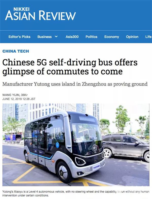 图 | 日本经济新闻报道宇通自动驾驶巴士