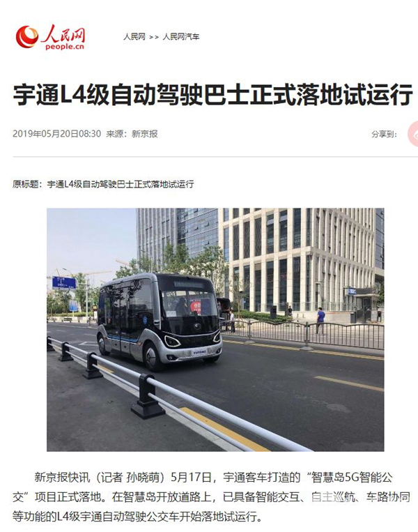 2015年8月,宇通第一代自动驾驶系统便在郑开大道开放道路进行了全球首例自动驾驶客车公开路试。2018年5月,达到有条件自动驾驶等级的纯电动客车在郑州宇通厂区实现常态化运营。到2019年5月,宇通L4级自动驾驶巴士“小宇”在郑州开放道路落地运行。