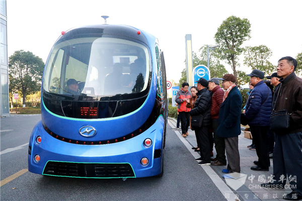在主办方的精心组织下,苏州金龙2辆L4级无人驾驶巴士“深蓝”早早就等候在体验区起点站。深蓝色的车身、整车造型圆润、线条流畅且充满科技感的形象,在冬日暖阳的照耀下,平添了几分科幻的味道。老干部们兴致勃勃地进入车内,感受无人驾驶巴士的魅力。随着无人驾驶巴士安全员的一声令下,“编队行驶”开始。只见头车和尾车同时关闭车门、缓缓启动,开始了编队行驶。行驶过程中,2辆苏州金龙无人驾驶巴士始终保持一定的安全距离。当车辆到达站点时,2辆无人驾驶巴士同时主动减速停下,车门自动打开。待乘客下车后,车门自动关闭,再次启动行驶。