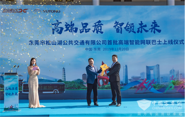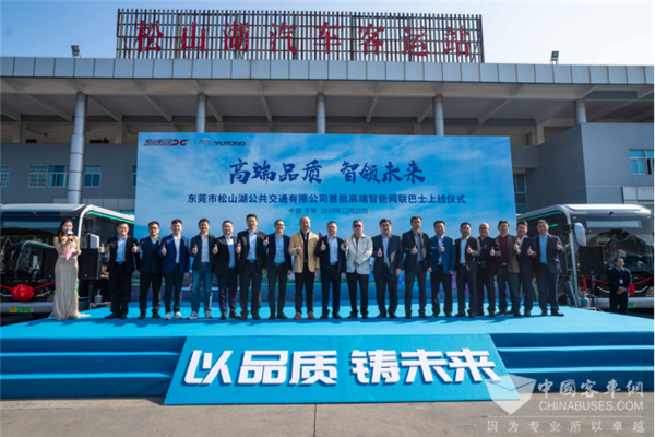 2019年12月20日上午,由东莞市松山湖公共交通有限公司引进的、华南地区首批30台宇通高端智能网联巴士U10正式宣布在松山湖上线,将为东莞市民出行提供新的美好体验。据了解,这30台车将在12月22日举行的东莞国际马拉松上首次亮相,承担志愿者和运动员接送保障任务,随后将正式投放运营。