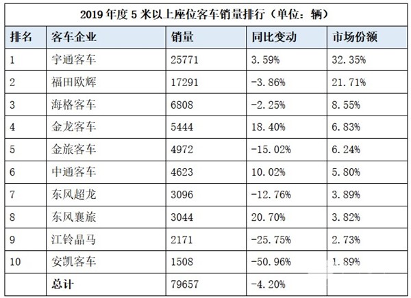 座位客车:总销量79657辆 强者恒强的“马太效应”愈发凸显
