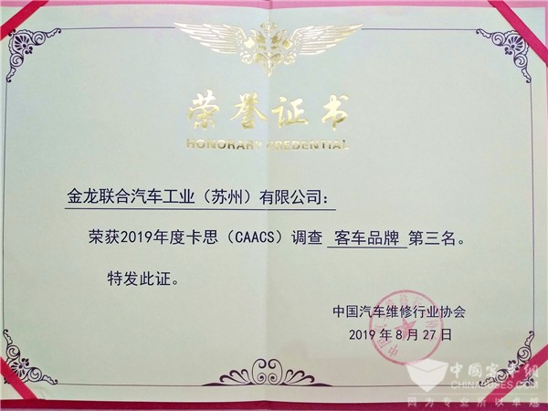 值得一提的是,2019年苏州金龙启动了售后服务评价认证项目,经过近一年的对标学习、自查自纠、改进完善、外审评价等工作流程,以96.7分的高分获得了中国质量认证中心(简称CQC)颁发的《商品售后服务评价体系》“五星级”证书,成为江苏省首家CQC认证的售后服务水平达到五星级标准的客车制造企业,也标志着海格客车在为客户需求提供整体解决方案基础上,通过实施服务转型升级,延展和提升了服务价值链,形成了竞争新优势,助力海格品牌再增值。