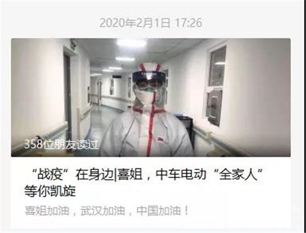 挖掘故事,弘扬担当。“新巴客栈”团队深入挖掘身边员工责任担当好故事,传递员工家属一线防疫好声音。如策划发布《“战疫”在身边|喜姐,中车电动“全家人”等你凯旋!》,讲述中车电动售后服务工程师妻子,主动请缨,“逆行”而上,驰援武汉抗战新型冠状病毒肺炎第一线的故事。