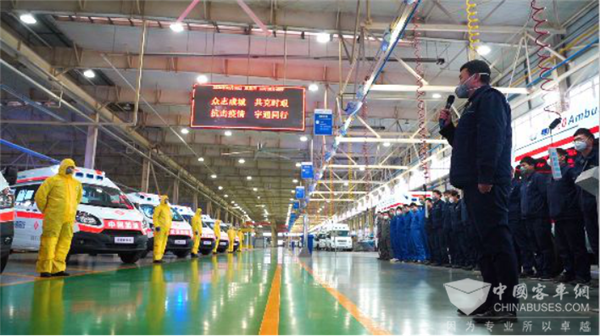 从大年三十晚接到工业和信息化部的紧急任务,要求加紧生产出一批负压救护车用于疫情防控,宇通便第一时间电话通知已经返家的相关员工,大年初二紧急复工!