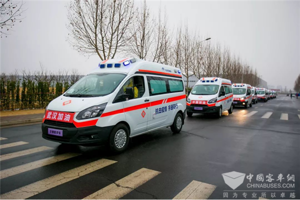 图 | 宇通捐赠10台负压救护车开赴武汉