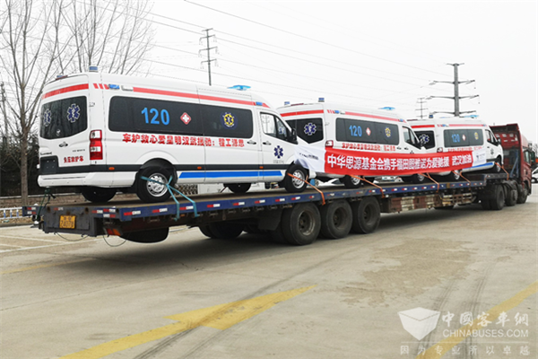 接到工信部紧急订单后,福田图雅诺在已经满负荷运转以满足全国各地救护车订单的基础上,利用10天时间火速赶制的负压救护车于今天上午奔赴雷神山医院,2020年2月15日前将陆续交付50台负压救护车,投入火神山、雷神山等医院疫情防控一线。潍坊高新区党工委副书记、管委会副主任赵文君将“福田汽车 大爱驰援”战旗授予福田汽车,并宣布福田图雅诺负压救护车发车。