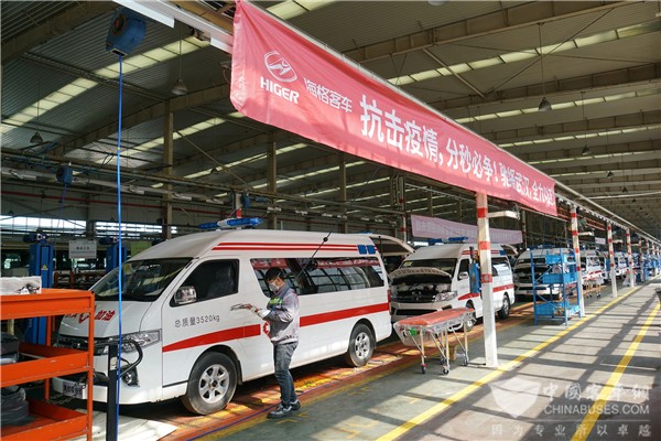 另外,苏州金龙也认真贯彻落实中央和省市各项工作部署,在市国资委的指导帮助下,坚持疫情防控和复工生产两手抓两手硬,排除各种困难,安排身体健康的在苏员工提前复工,做好设计、物料及生产的提前准备,每个复工员工进厂都要量体温、佩戴口罩、勤洗手,车间每天做好消毒工作,严格按每台车2名技术工人的标准生产,连夜赶制。