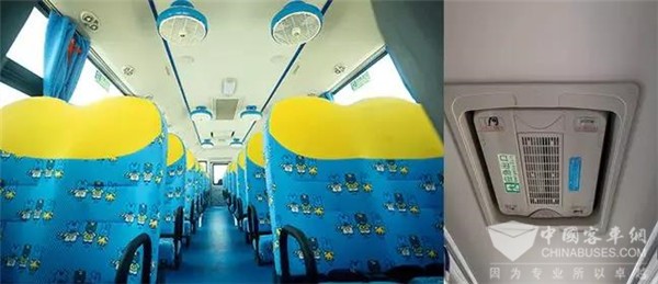 校车车厢是一个相对封闭的空间,尤其是现在的温度还普遍较冷,一般车上都需要打开空调暖风。因此,对于空调风道的消毒防护,以及通过风道过滤功能更好的消毒抑菌,就成为欧辉“超级健康校车”设计当中的一项重要考量。