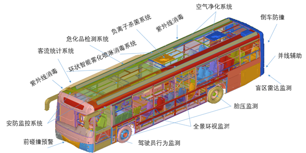 公交车由于人员密度高、人员流动性大、车门开启频繁等特点,疫情防控难度大,国唐汽车通过三重防护——360度杀菌消毒系统、负离子杀菌消毒系统、智能体温监控系统,打造了具有智能移动安全舱的公交车。