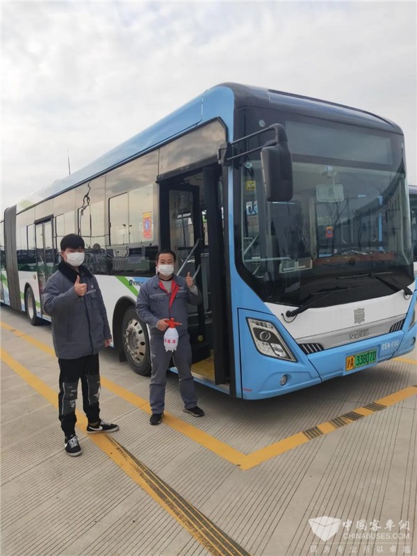 在河北、山东等地区,售后服务工程师还主动配合公交公司,对车辆进行消毒。售后服务工程师谭工介绍:“复工潮的来临,给售后和公交公司都提出了更高的要求,不仅要做好防疫措施,也要保证乘客的安全到达。在上周,我和公交司机一同对50辆公交车进行消毒,同时将公交车‘安检’完毕,帮助恢复了3条公交线路的运营。”