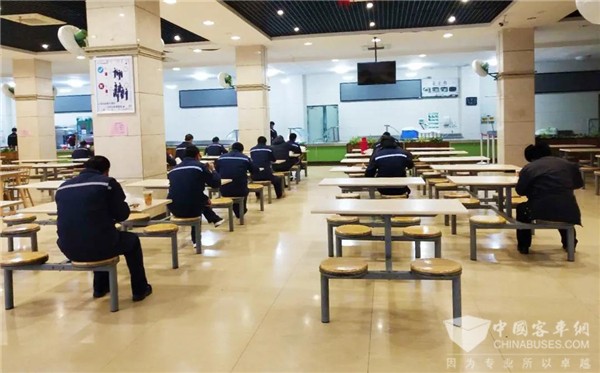 除了对用餐环境进行管控之外,宇通还严把“食物入口关”,从采购到洗消,统统进行“全流程监控“,不给病毒可乘之机!