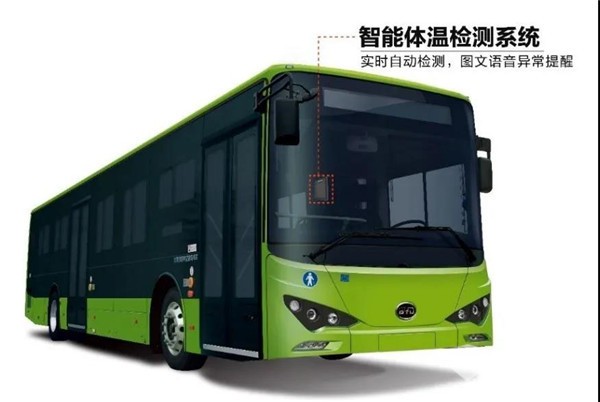 针对公共交通工具人员密度大、流动性强和空间密闭等特点,比亚迪客车进行创新研发设计,在上客门处搭载非接触式智能体温检测系统,通过红外热成像技术实时监测上车乘客体温,并实现测量数据的存储和上传。若司乘人员体温异常,系统将及时语音报警、记录数据,为敏感人群的筛查和追踪提供高效手段。