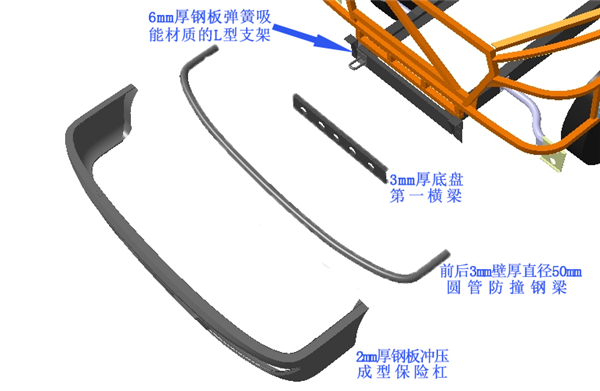为最大限度保障学童安全,提升车辆防撞安全性,中通校车在业界首创了“2+3+3+6”多级安全保障结构,即2mm厚钢板冲压成型保险杠+前后3mm壁厚直径50mm圆管防撞钢梁+3mm厚底盘第一横梁+6mm厚钢板弹簧吸能材质的L型支架,多级吸能,有效缓冲碰撞瞬间带来的冲击力,减轻或避免车内成员因碰撞造成的伤害,将安全做到极致,该项设计获得山东省机械工业科学技术协会 “国内领先水平”的评价。