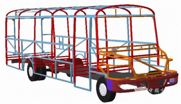 整车通过采用CATIA设计,有限元分析,加上实车的滚翻验证,采用仿全承载结构的格栅式车身,拥有多达七道全封闭环车身骨架,既保证了骨架成员舱的刚度(保证侧撞、滚翻时乘员的生存空间),又保证了车身最优的轻量化设计,安全及轻量化水平达到行业内领先水平,百公里油耗可降低3L多,省油节能,提高了车辆使用的经济性。