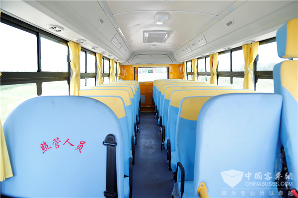 为提升该款校车车内空间和乘员数,中通的设计人员进行了多项优化设计。如:发动机舱合理布局、优化风挡斜度和仪表台前后方向尺寸,车内空间得以进一步释放,使该车座位数多达46座,为同级别最高,被客户称赞为8米校车承载之王!